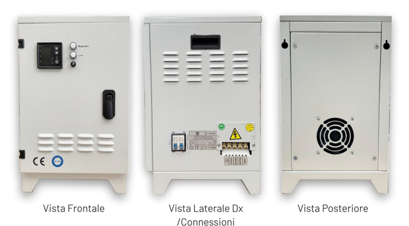 | Protezioni in Uscita | Corto-circuito, sovracorrente, tensione bassa-alta, tramite contattore uscita |
